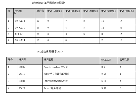 脆弱性分析:网络问题(高风险3个,中风险2个)主机系统:13个问题(很高风险1个,高风险7个,中风险4个,低风险1个)数据库系统:11个问题(高风险7个,中风险1个,低风险3个)应用系统:5个问题(高风险3个,中风险1个,低风险1个)安全管理:13个问题(高风险6个,中风险6个,低风险1个)。