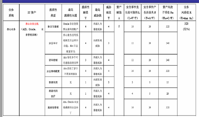 计算方法 :我们在该评估项目中,选择“相乘法”的风险计算方法计算业务、资产的风险值。