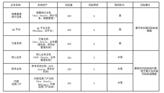各业务系统安全风险等级: